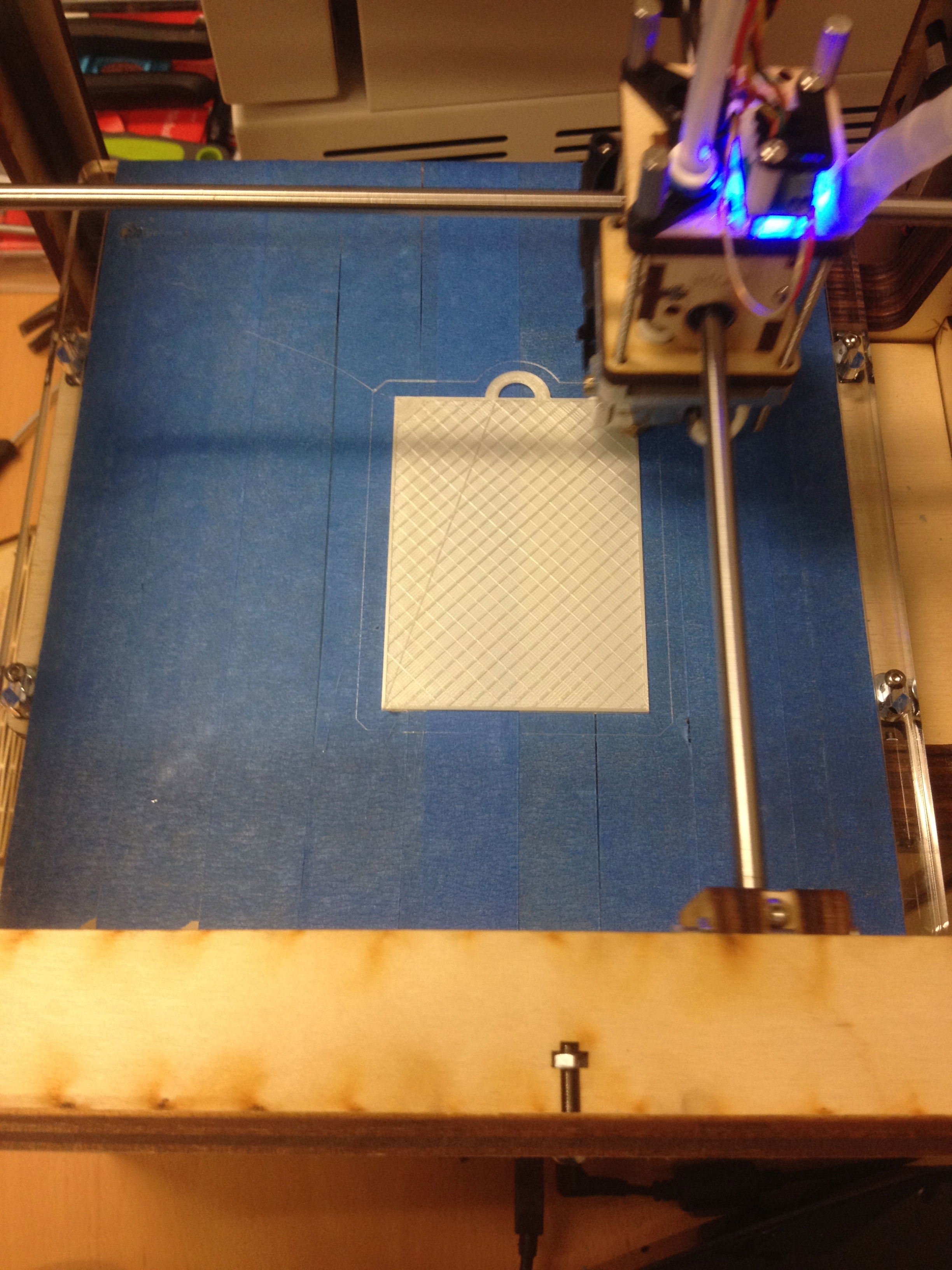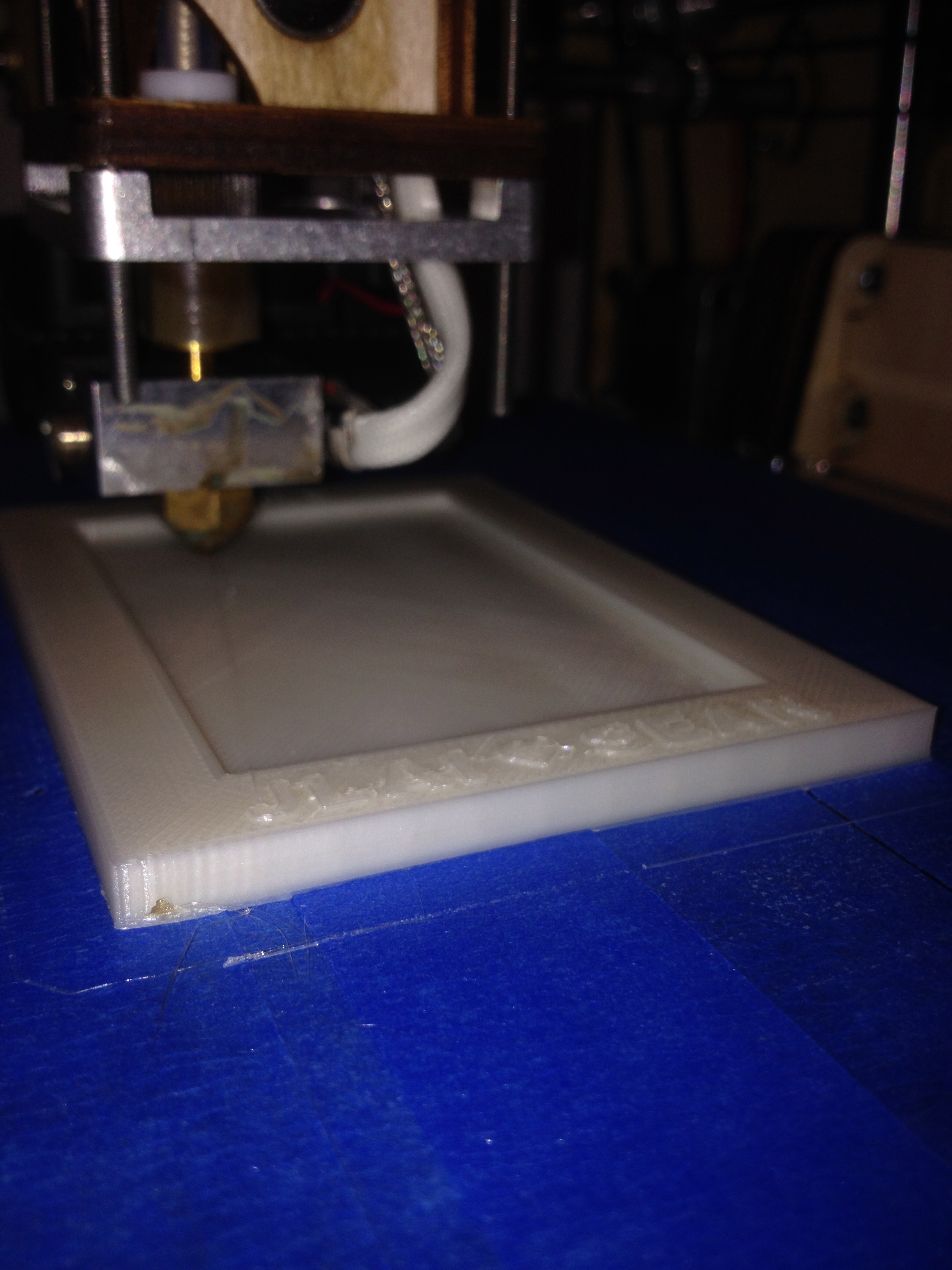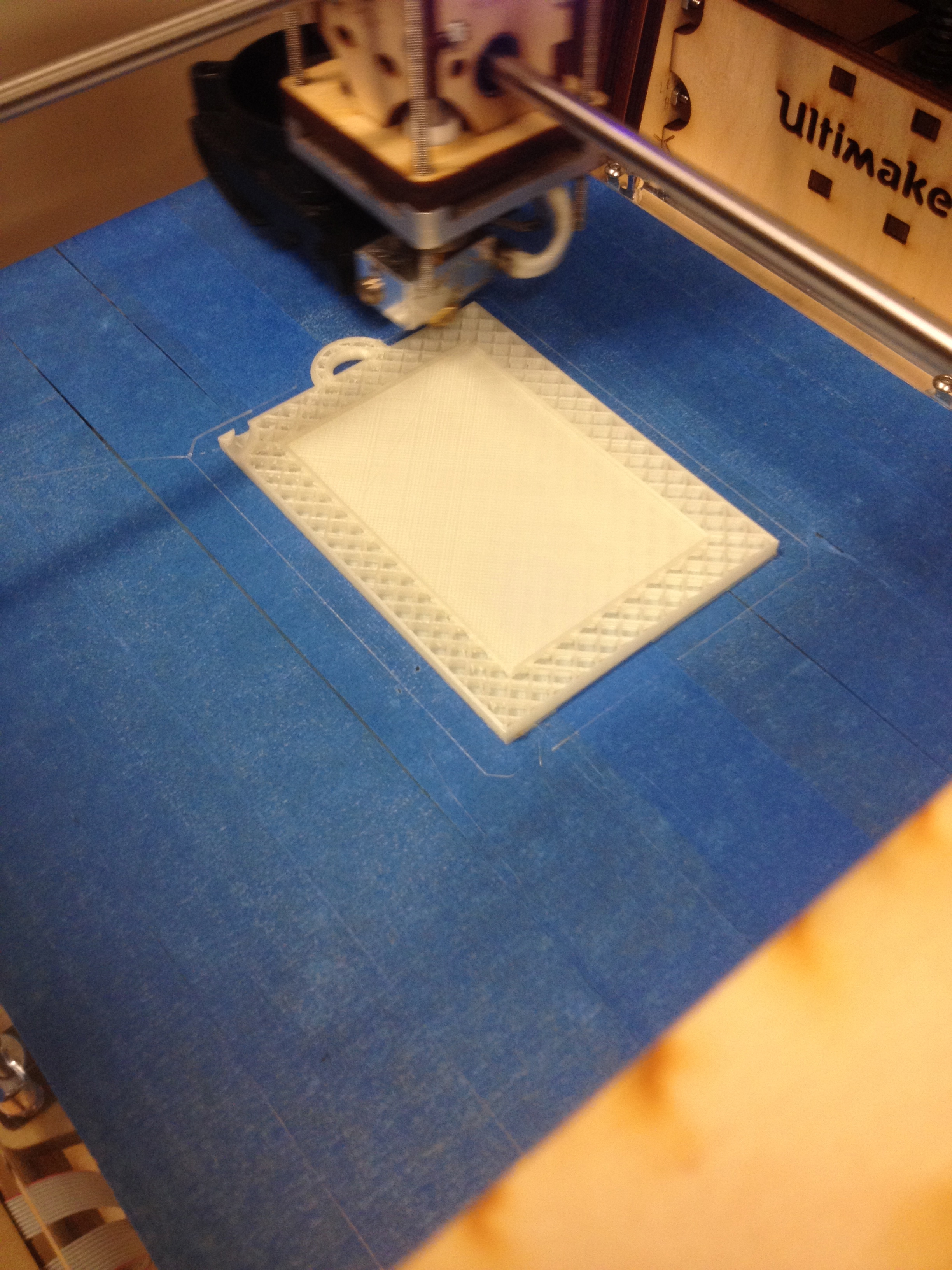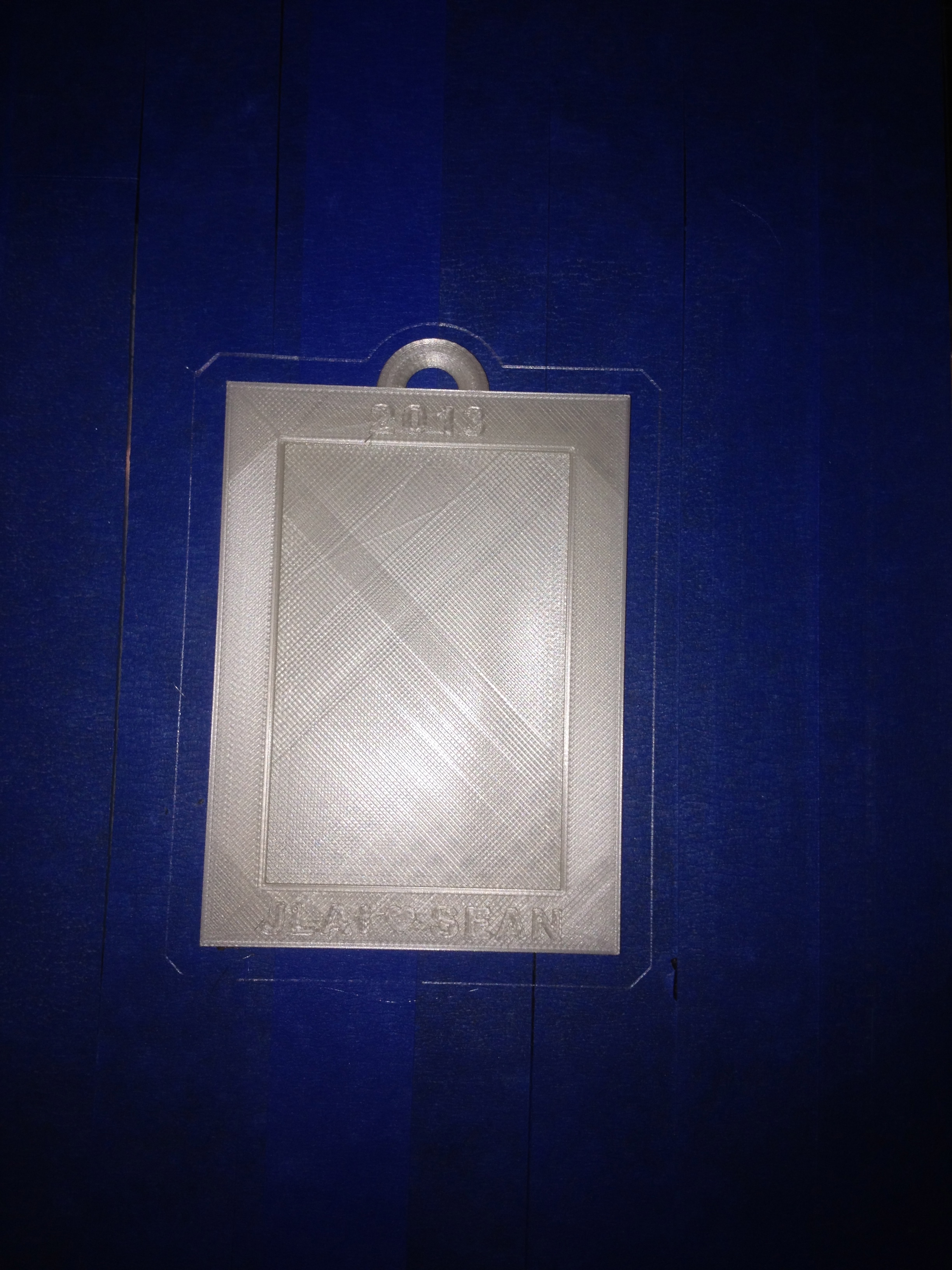 Here is the first design I made using a 3D printer. I used TinkerCad to design the picture frame, and used the MakerBot to print the picture frame. I added a loop to hang it, and a hole, just incase the loop broke off.